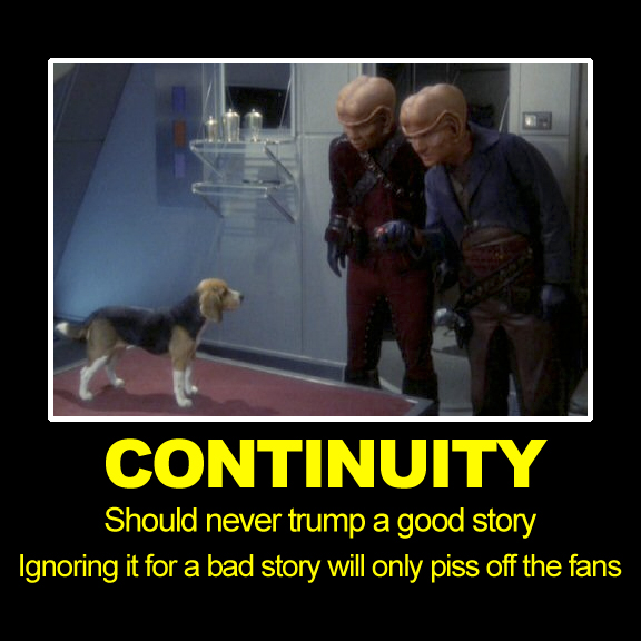 I do fault Berman and ESPECIALLY Braga for continuing the stupidity of the temporal cold war, the Ferengi and Borg episodes, and everything that flew in the face of continuity.
