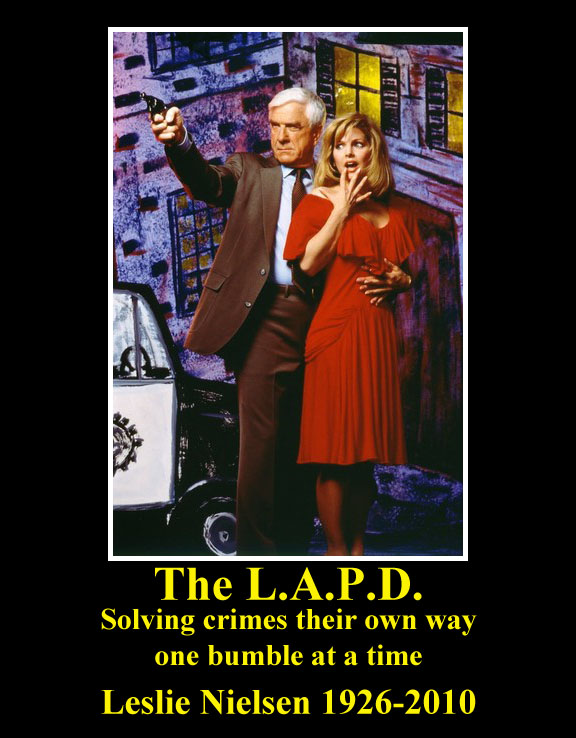 Lt. Frank Drebbin solved more crimes because of his ineptitude than in spite of it. The Police Squad TV show and the first two Naked Gun movies are classics.