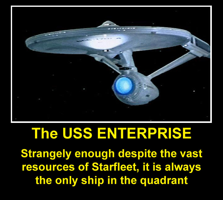 Seriously, the Federation seems to leave its home planet very undefended. The only time the Enterprise wasn’t the only ship in the quadrant was when the Borg attacked at Wolf 359. Everyone else was wiped out.