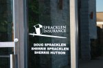 Yesterday the weather cleared enough that I was able to finish the installation for Spracklen Insurance’s new window signs. The design for the Logo was done by Tennyson Rog.