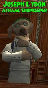 Joseph Lydon is the “Athame Shopkeeper” in Marleybone. He is located in Regent’s Square, inside Lady Labrador’s Athames shop, on the south side of Market Square.