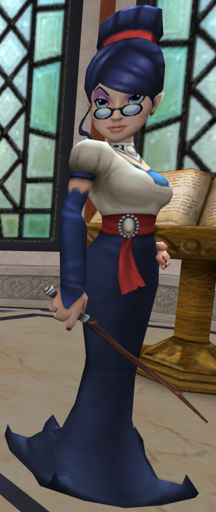 Belladonna Crisp is the Headmistress of the rival school, Pigswick Academy. She is a strict person who believes that a fountain, located near the Tournament Arena, is the magical source of power for Wizards and not Bartleby, the Grandfather Tree. She also believes that Headmaster Merle Ambrose and the teachers of Ravenwood have taught your wizard the wrong idea about magic and says that Pigswick is the “perfect” school. Note Belladonna is the Italian word for “Beautiful Woman”