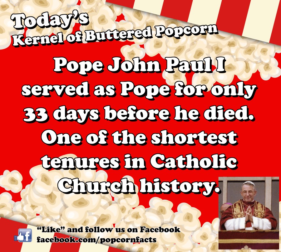 John Paul I (August 26–September 28, 1978): reigned for 33 calendar days.