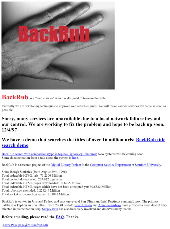 Kernels of Buttered Popcorn: Backrub, Early Google
