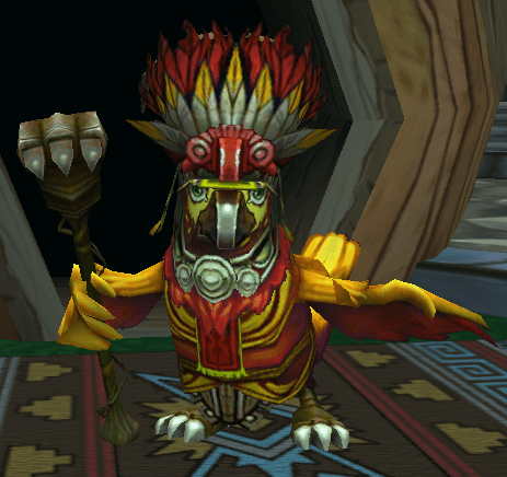 Acan Winefeather is the leader of the Avians in Tula Village. At first he is wary of your wizard due to the fact that you are delivering a War challenge from Techotl Redsmoke.