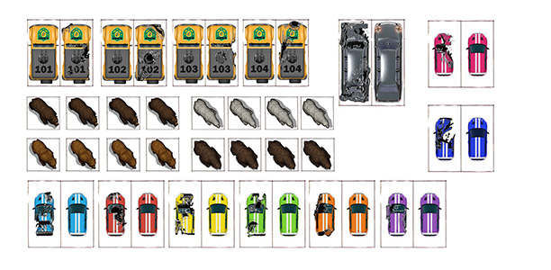 The scenario needs Bears, lots of bears. Sadly bear counters for Car Wars do not exist. Well until now that is. Please find for your convenience a counter sheet and vehicle stat sheets with 16 bears, 4 BRAP Zoo Ranger SUVs, 8 identical escape vehicles, and the judge. Ballard resident vehicles will be too varied and are up to the Ref to provide and place.
