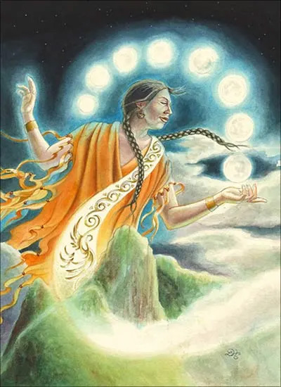 Mama Quilla image is copyright Lisa Hunt it is borrowed from the Journeying to the Goddess blog is displayed under fair use.