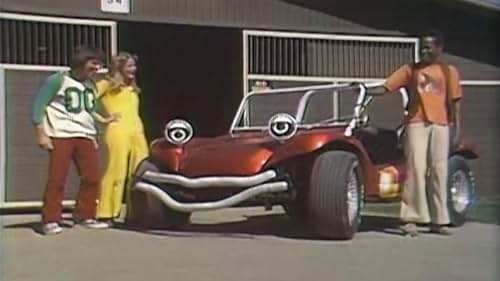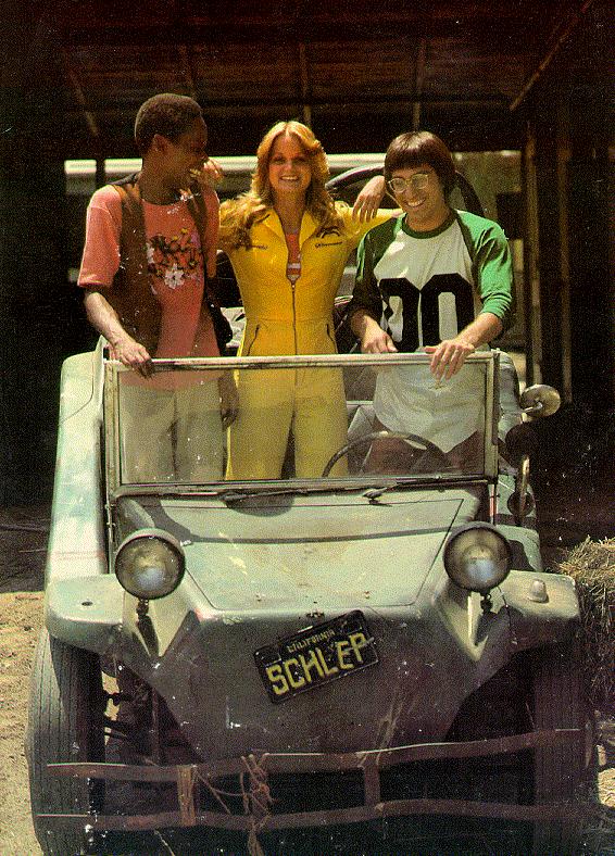 Wonderbug’s alter ego “Schlepcar” (so named due to its personalized California license plate “SCHLEP”) was an old, beat up, conglomeration of several junked cars that looked like a rusty dune buggy. Like Herbie of The Walt Disney Company film fame, Schlepcar was alive and could drive itself, and could also talk in a mumbling voice. It was found in a junk yard by teenagers Barry Buntrock (David Levy), C.C. McNamara (John Anthony Bailey) and Susan Talbot (Carol Anne Seflinger). Schlepcar transformed into the shiny metal-flake orange Wonderbug (vocal effects provided by Frank Welker) whenever a magic horn (which played the bugle call for “cavalry charge”) was sounded. In his Wonderbug identity, Schlepcar had the power of flight and was able to help the three teens capture crooks and prevent wrongdoing.