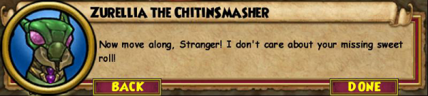 Zurellia the ChitinSmasher and dialogue box images are from Wizard101, and are copyright of KingsIsle Entertainment.