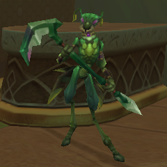 Zurellia the ChitinSmasher is a Mantis warrior sympathetic to the plight of the merchants, who are being blackmailed by Vazivika the Spiritbreaker, her commanding officer.