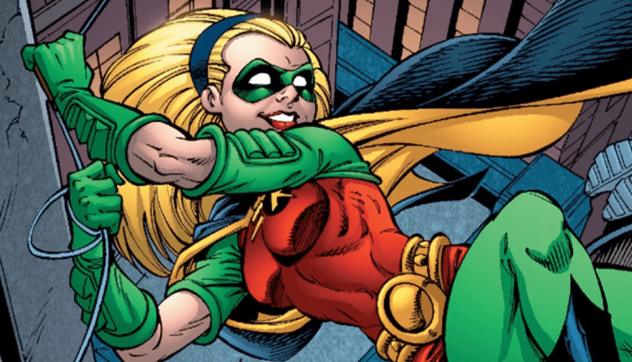 Robin IV: Stephanie Brown, Tim Drake’s girlfriend and the costumed adventurer previously known as the Spoiler, volunteered for the role of Robin upon Tim’s resignation. Batman fired the Girl Wonder for not obeying his orders to the letter on two occasions. Stephanie then stole one of Batman’s incomplete plans to control Gotham’s crime and executed it. Trying to prove her worthiness, Brown inadvertently set off a gang war on the streets of Gotham. While trying to help end the war, Brown was captured and tortured by the lunatic crime boss Black Mask. She managed to escape, but apparently died shortly afterwards due to the severity of her injuries. Tim Drake keeps a memorial for her in his cave hideout underneath Titans Tower in San Francisco. She appeared alive and stalking Tim, after his return from traveling around the globe with his mentor. It turned out that Dr. Leslie Thompkins had faked Stephanie’s death in an effort to protect her. For years she operated on and off as the Spoiler, but was then recruited as Barbara Gordon’s replacement as Batgirl.