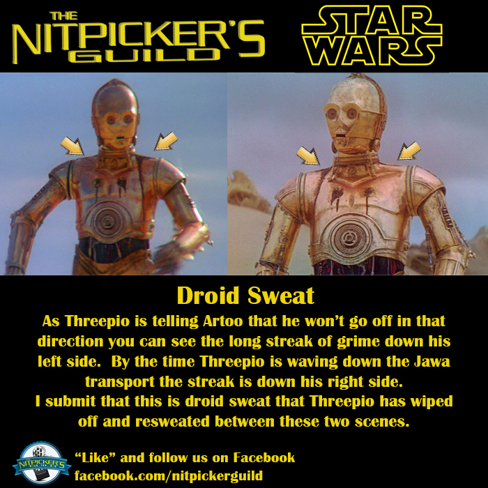 I’m quite certain that someone will wish to point out that this is nothing more than a “flipped shot”, that George Lucas shot left to right on location and printed right to left in the film. Remember Nitpickers do not accept the realities of film production, only the “REEL-ities”