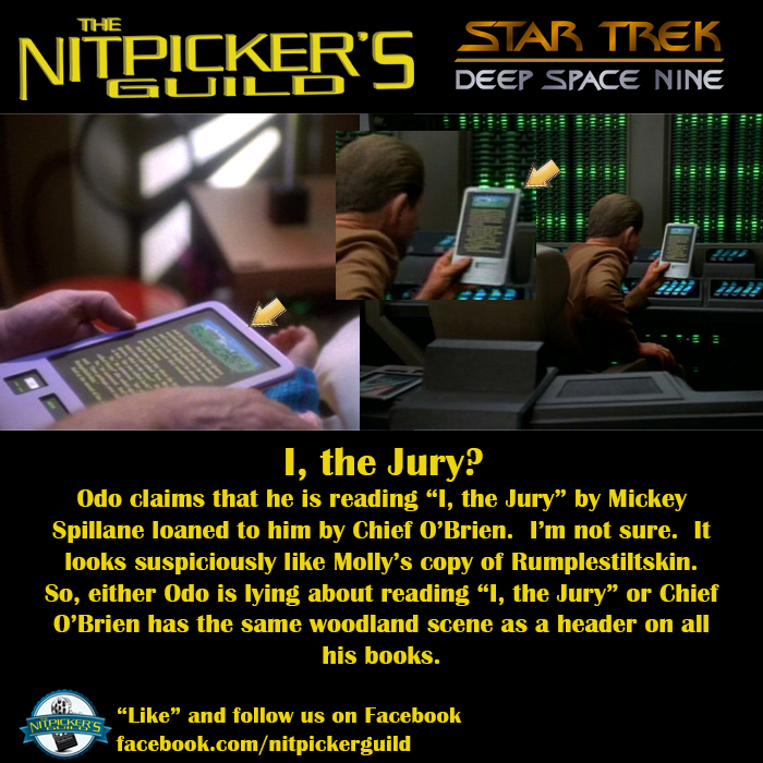 In the episode “If Wishes Were Horses”, we can clearly see the Rumpelstiltskin story on Chief O’Brien’s PADD. The PADD that Odo borrowed from the Chief in “Profit and Loss” looks eerily similar, right down to the header and paragraph breaks.