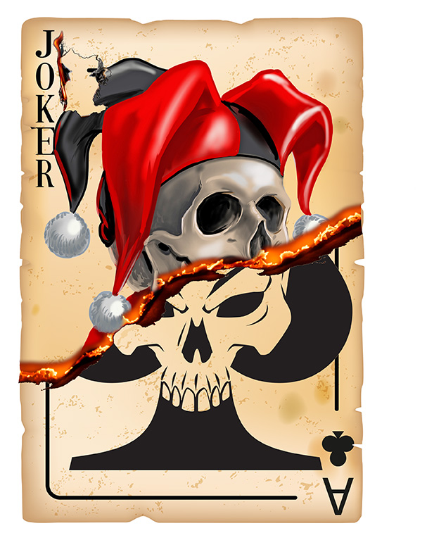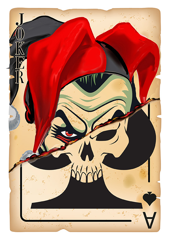 I nailed the concept but my client wanted the joker face to line up with skull in the Ace of Spades.