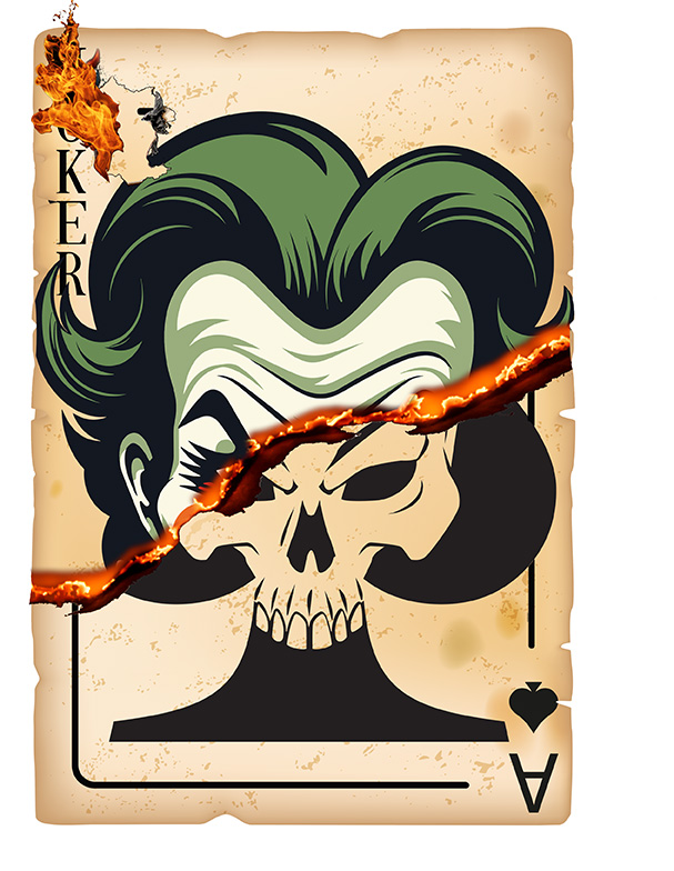 Removed the corner burn and the rosy cheek. Added an outline for “Joker” to make it pop.