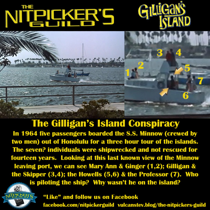 I want to know WHO is piloting the Minnow out of port. He (or she) is NOT harbor pilot as they usually wear a bright easily seen vest and the Minnow is well short of the 100 foot minimum length to require a harbor pilot. This mysterious person is NEVER mentioned by the castaways. This person is never seen or heard from again.