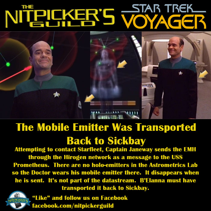 It should have clattered back to the deck in the Astrometrics Lab. Because technically the EMH wasn’t transported, he was file shared.