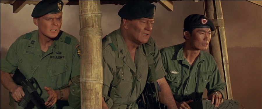 The Green Berets is strongly anti-communist and pro-South Vietnam. It was released at the height of American involvement in the Vietnam War, the same year as the Tet Offensive against the largest cities in South Vietnam. John Wayne was so concerned by the anti-war sentiment in the United States, he wanted to make this film to present the pro-military position. He requested and obtained full military cooperation and materiel from 36th President Lyndon B. Johnson and the United States Department of Defense. John Wayne bought the film rights to Robin Moore’s book for $35,000 and 5% of undefined profits of the film.