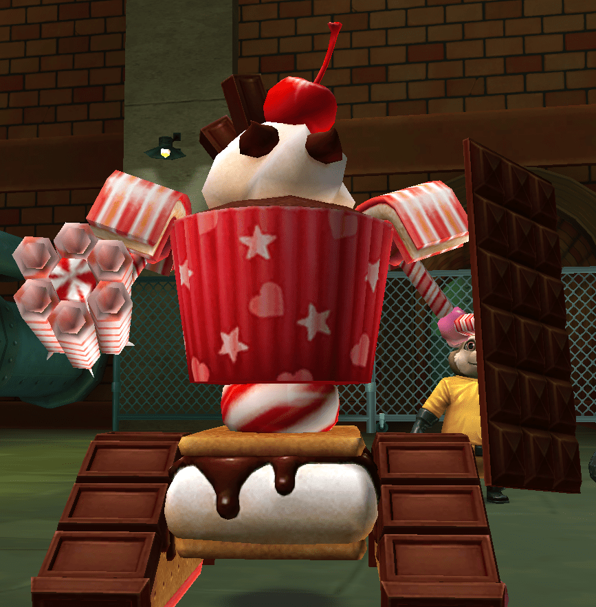 Whatchamagolems are Nana’s robot security force. They are constructed from cupcakes, peppermint, S’Mores, chocolate bars, and graham crackers.