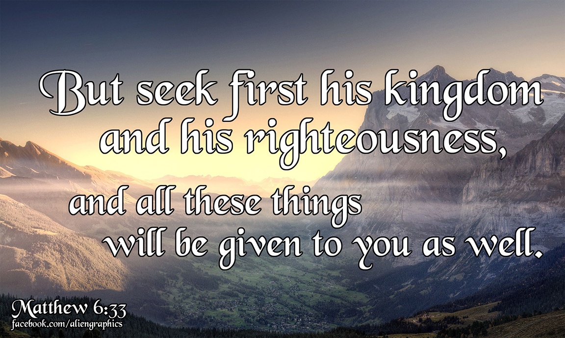 But seek first His kingdom and His righteousness, and all these things will be provided to you. Matthew 6:33 (NASB)