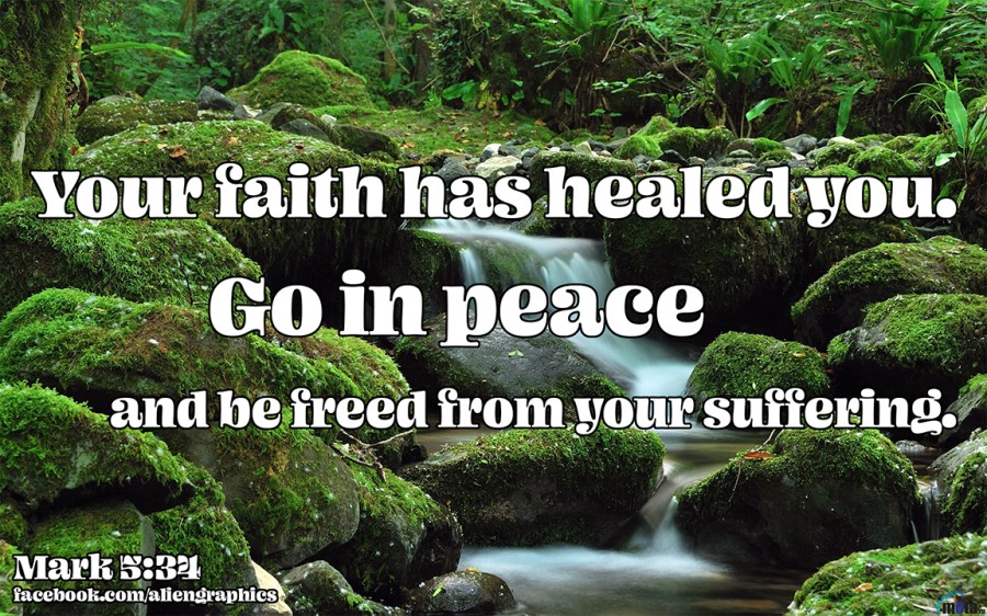 25 A woman who had had a hemorrhage for twelve years, 26 and had endured much at the hands of many physicians, and had spent all that she had and was not helped at all, but instead had become worse— 27 after hearing about Jesus, she came up in the crowd behind Him and touched His cloak. 28 For she had been saying to herself, “If I just touch His garments, I will get well.” 29 And immediately the flow of her blood was dried up; and she felt in her body that she was healed of her disease. 30 And immediately Jesus, perceiving in Himself that power from Him had gone out, turned around in the crowd and said, “Who touched My garments?” 31 And His disciples said to Him, “You see the crowd pressing in on You, and You say, ‘Who touched Me?’” 32 And He looked around to see the woman who had done this. 33 But the woman, fearing and trembling, aware of what had happened to her, came and fell down before Him and told Him the whole truth. 34 And He said to her, “Daughter, your faith has made you well; go in peace and be cured of your disease.”