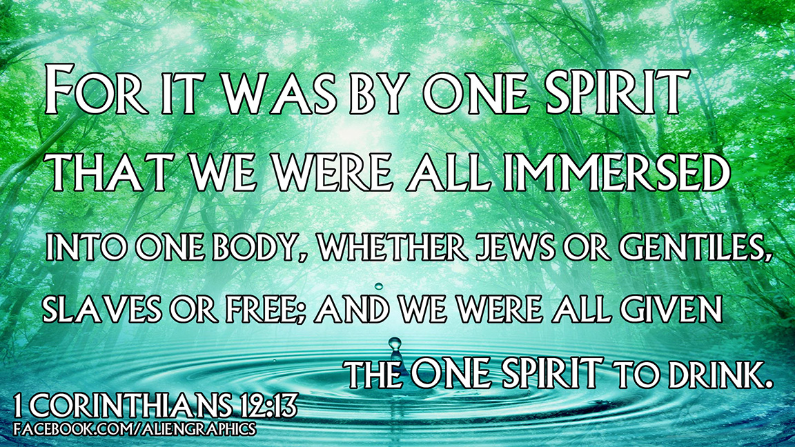 For by one Spirit we were all baptized into one body, whether Jews or Greeks, whether slaves or free, and we were all made to drink of one Spirit. – 1 Corinthians 12:13 (NASB)