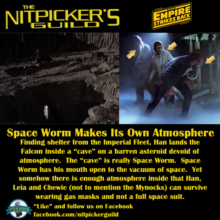 12-year old Steve had NO problems with Space Worm. 57-year old Steve has questions. How does Space Worm keep a Mynock friendly atmosphere contained without venting it into space? Why isn’t Space Worm’s interior frozen solid because of the depths of space? What does Space Worm eat? Rocks? Why did Space Worm wait until AFTER Han had realized that the Falcon wasn’t in a cave to finally close it’s mouth?