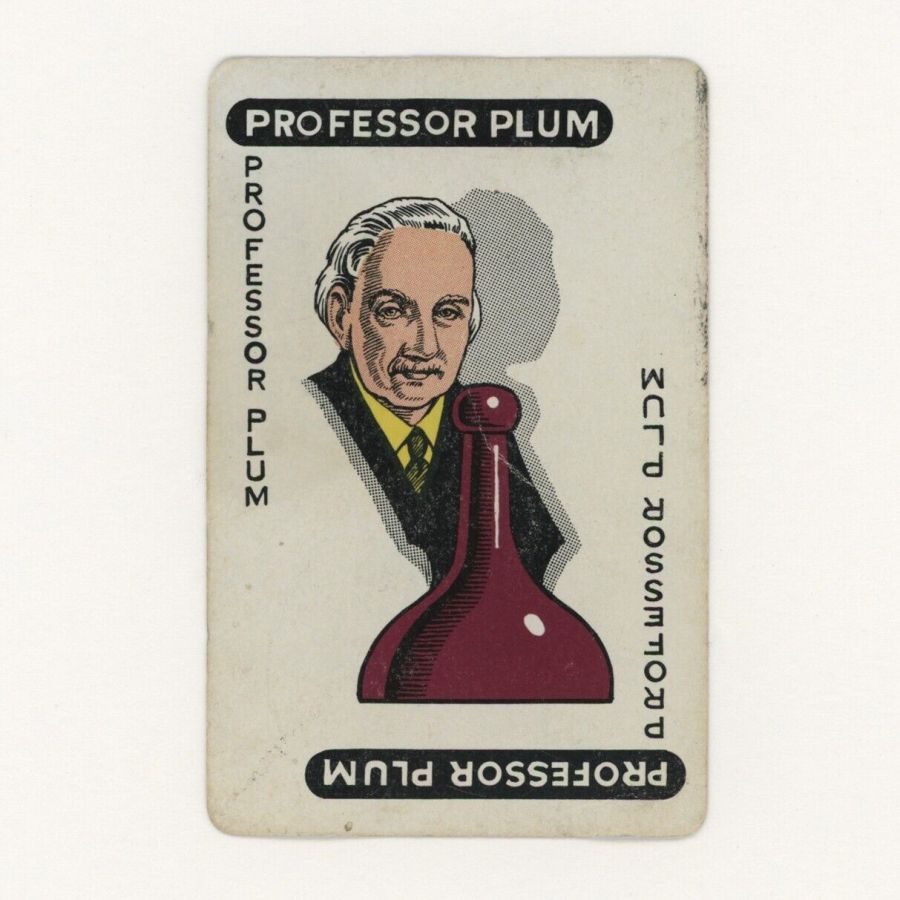 1949 UK: Professor Plum was first depicted as an elderly pontificating scientist with the brains of Albert Einstein. Head mounted on a purple pawn.