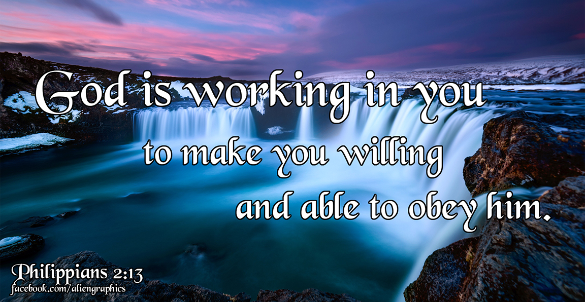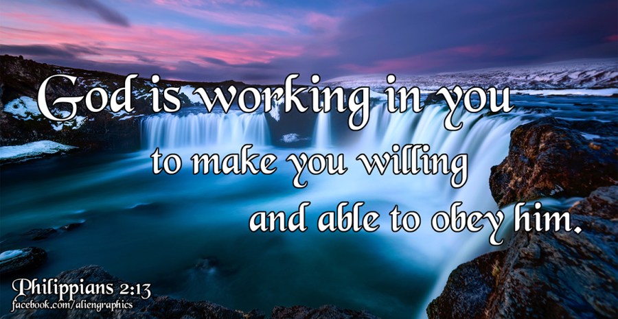12 So then, my beloved, just as you have always obeyed, not as in my presence only, but now much more in my absence, work out your salvation with fear and trembling; 13 for it is God who is at work in you, both to will and to work for His good pleasure Philippians 2:12-13 NASB