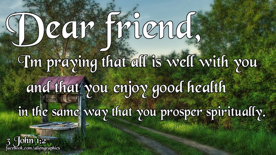 2 Beloved, I pray that you may prosper in all things and be in health, just as your soul prospers. 3 For I rejoiced greatly when brethren came and testified of the truth that is in you, just as you walk in the truth. 4 I have no greater joy than to hear that my children walk in truth. 3 John 1:2-4 NKJV