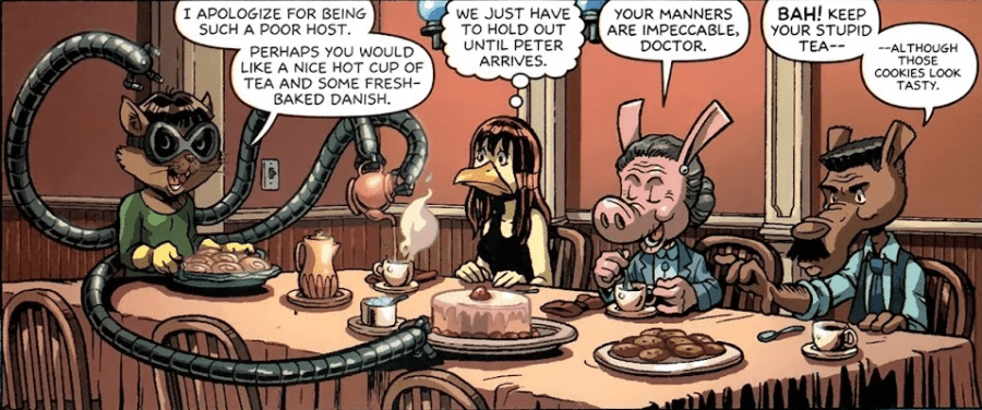 In the Marvel Universe on Earth-8311, Peter Porker (The Amazing Spider-Ham)’s girlfriend is Mary Crane Watsow.