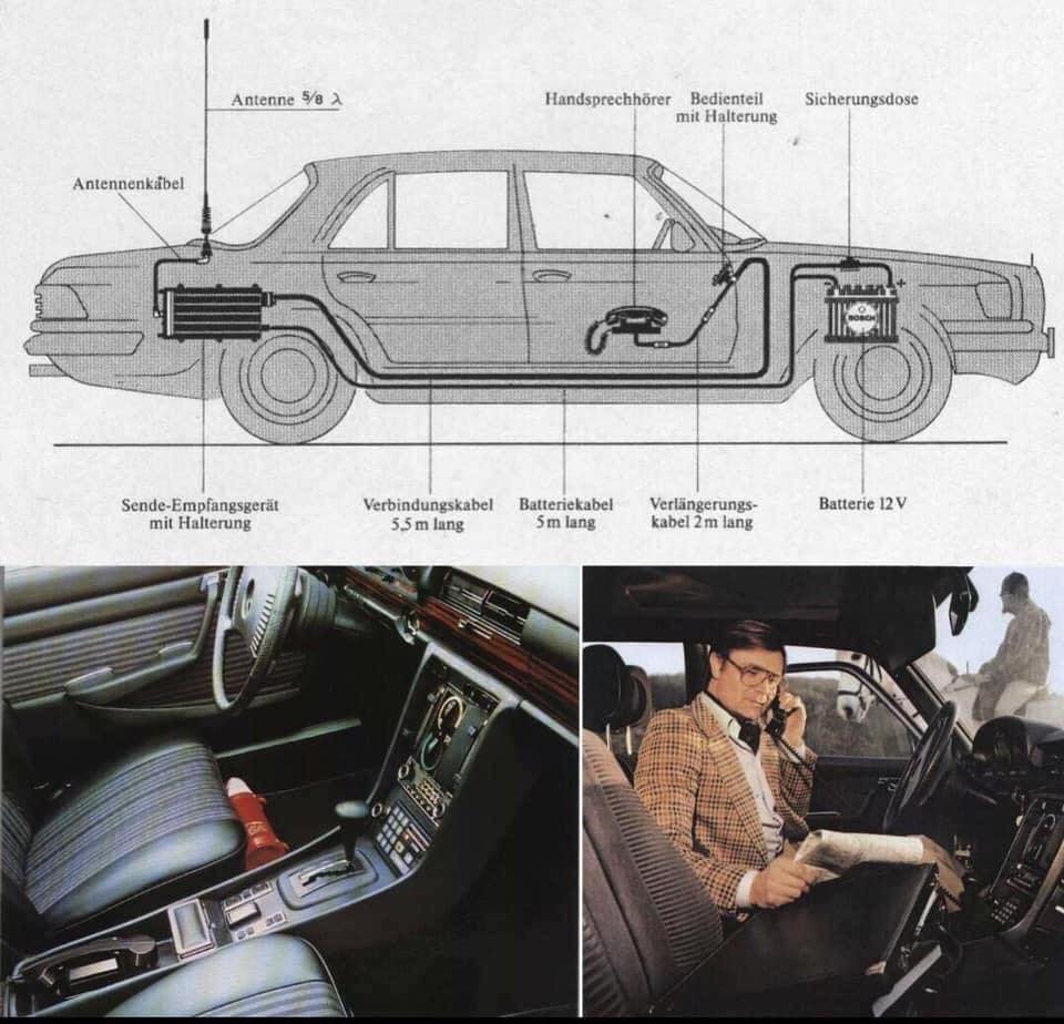As of 1970 Mercedes Benz was offering car phones as an option on their vehicles. But in the 1970s the car needed a sending and receiving unit mounted in the trunk. This unit was attached to rather large antenna.