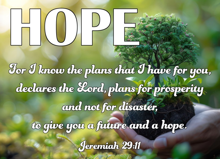 10 “For this is what the Lord says: ‘When seventy years have been completed for Babylon, I will visit you and fulfill My good word to you, to bring you back to this place. 11 For I know the plans that I have for you,’ declares the Lord, ‘plans for prosperity and not for disaster, to give you a future and a hope. 12 Then you will call upon Me and come and pray to Me, and I will listen to you. 13 And you will seek Me and find Me when you search for Me with all your heart. 14 I will let Myself be found by you,’ declares the Lord, ‘and I will restore your fortunes and gather you from all the nations and all the places where I have driven you,’ declares the Lord, ‘and I will bring you back to the place from where I sent you into exile.’ Jeremiah 29:10-14
