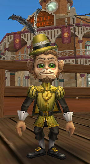Marquis Mark is the biggest fruit exporter in the Spiral. He is a friend of Prospector Zeke, and cousin of Don Manzana. Shortly before your Pirate arrived on Skull Island, a shipment of Marquis Mark’s bananas was scattered across the entire world. Mark soon ran into his friend Zeke, and not long after Zeke introduced him to the Pirate, who agreed to find his Funky Bunch of bananas. Your Pirate found the bananas all throughout Skull Island and returned them to him. Marquis Mark tells your Pirate to say hi your mother.