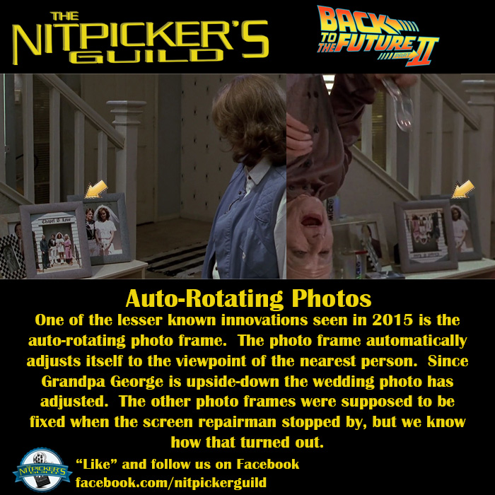 A nit that actually accurately foretold (unlike hoverboards or flying cars) technology that would be available in 2015. Not so much in photo frames (though I do have one of those in the living room), but cell phones and tablets do have the feature.