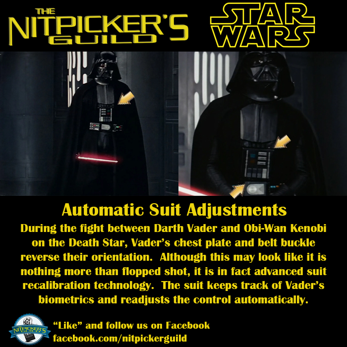 Nitpickers KNOW that there is no such thing as a “flopped shot”. Every single frame of film is documentary footage. When we see what is obviously a mirror image of Darth Vader, we can only assume that some sort of advanced technology is evident.