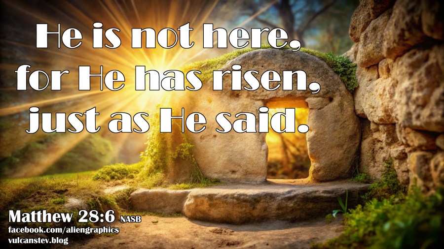 28 Now after the Sabbath, as it began to dawn toward the first day of the week, Mary Magdalene and the other Mary came to look at the tomb. 2 And behold, a severe earthquake had occurred, for an angel of the Lord descended from heaven and came and rolled away the stone, and sat upon it. 3 And his appearance was like lightning, and his clothing as white as snow. 4 The guards shook from fear of him and became like dead men. 5 And the angel said to the women, “Do not be afraid; for I know that you are looking for Jesus who has been crucified. 6 He is not here, for He has risen, just as He said. Come, see the place where He was lying. 7 And go quickly and tell His disciples that He has risen from the dead; and behold, He is going ahead of you to Galilee. There you will see Him; behold, I have told you.”