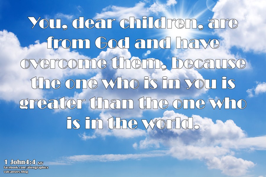 4 You, dear children, are from God and have overcome them, because the one who is in you is greater than the one who is in the world. 5 They are from the world and therefore speak from the viewpoint of the world, and the world listens to them. 6 We are from God, and whoever knows God listens to us; but whoever is not from God does not listen to us. This is how we recognize the Spirit of truth and the spirit of falsehood.
