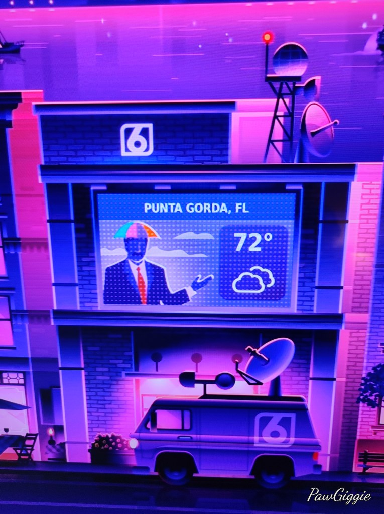 Wow! I completely missed the Simpsons reference. There is a channel called 6 News Now here. It’s in Sarasota, but close enough to Punta Gorda that I figured it was them. There’s even a pic on the Simpsons Wiki that includes very similar news vans. I think it’s really funny that your weather just happens to be coming out of Springfield.