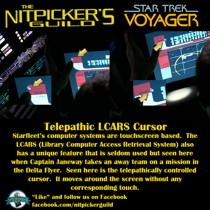 LCARS (Library Computer Access Retrieval System) is Starfleet’s OS in the late 23rd and early 24th century. It is touch screen or voice controlled across all access points from PADDS to ship Helm and OPS. So WHY does it need a cursor? It must be 400-year old legacy code that developers have tried to remove but it crashes everything when it’s removed and programmers cannot explain why so they’ve left the code in place.