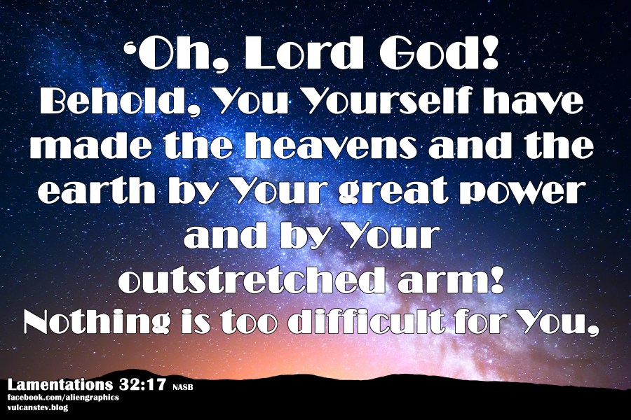 16 “After giving the deed of purchase to Baruch the son of Neriah, I prayed to the Lord, saying, 17 ‘Oh, Lord [God! Behold, You Yourself have made the heavens and the earth by Your great power and by Your outstretched arm! Nothing is too difficult for You, 18 who shows mercy to thousands, but repays the wrongdoing of fathers into the laps of their children after them, great and mighty God. The Lord of armies is His name; 19 great in counsel and mighty in deed, whose eyes are open to all the ways of the sons of mankind, giving to everyone according to his ways and according to the fruit of his deeds; 20 who has accomplished signs and wonders in the land of Egypt, and even to this day both in Israel and among mankind; and You have made a name for Yourself, as at this day. 21 You brought Your people Israel out of the land of Egypt with signs and with wonders, and with a strong hand and an outstretched arm, and with great terror; 22 and You gave them this land, which You swore to their forefathers to give them, a land flowing with milk and honey. 23 They came in and took possession of it, but they did not obey Your voice or walk in Your Law; they did not do anything that You commanded them to do; therefore You have made all this disaster happen to them. 24 Behold, the assault ramps have reached the city to take it; and the city has been handed over to the Chaldeans who fight against it, because of the sword, the famine, and the plague; and what You have spoken has come to pass; and behold, You see it. 25 Yet You have said to me, Lord God, “Buy for yourself the field with money and call in witnesses”—although the city has been handed over to the Chaldeans.’”