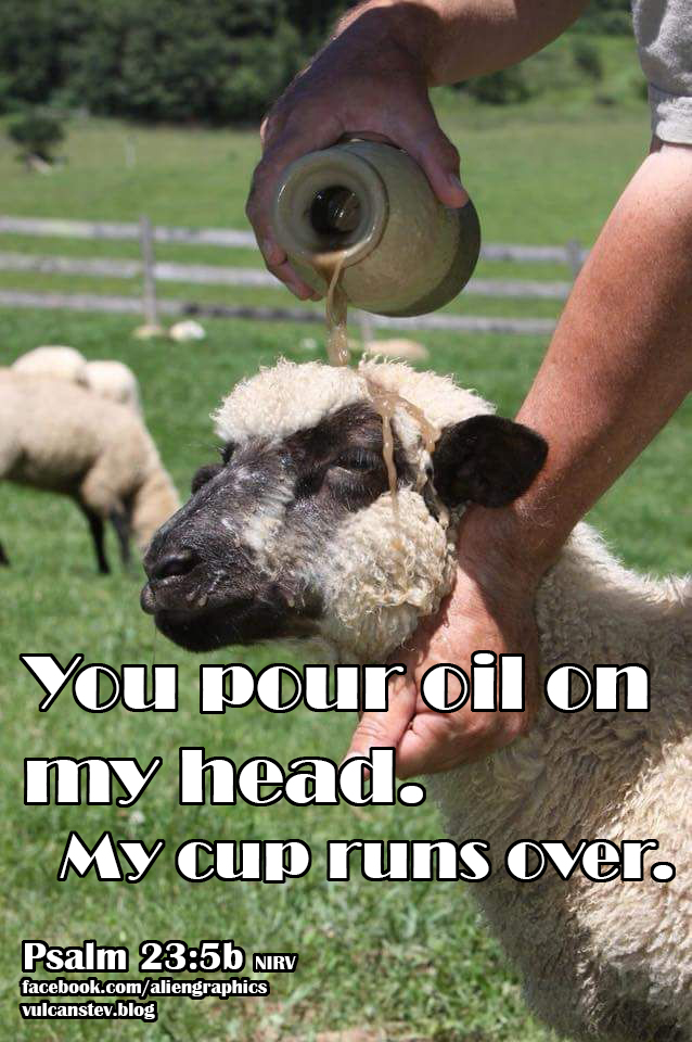 In Psalm 23 King David, himself a shepherd, mentions the shepherd anointing the sheep’s head with oil as a symbol of God’s protection and care for his followers.