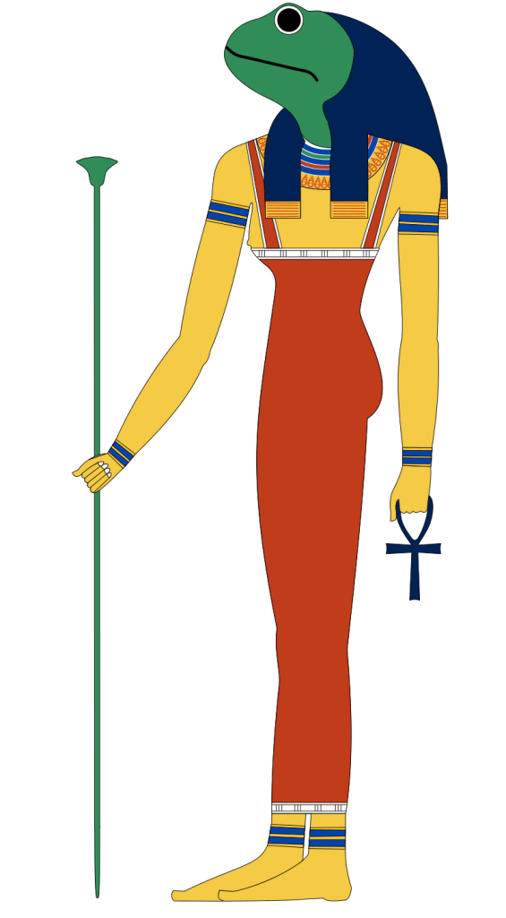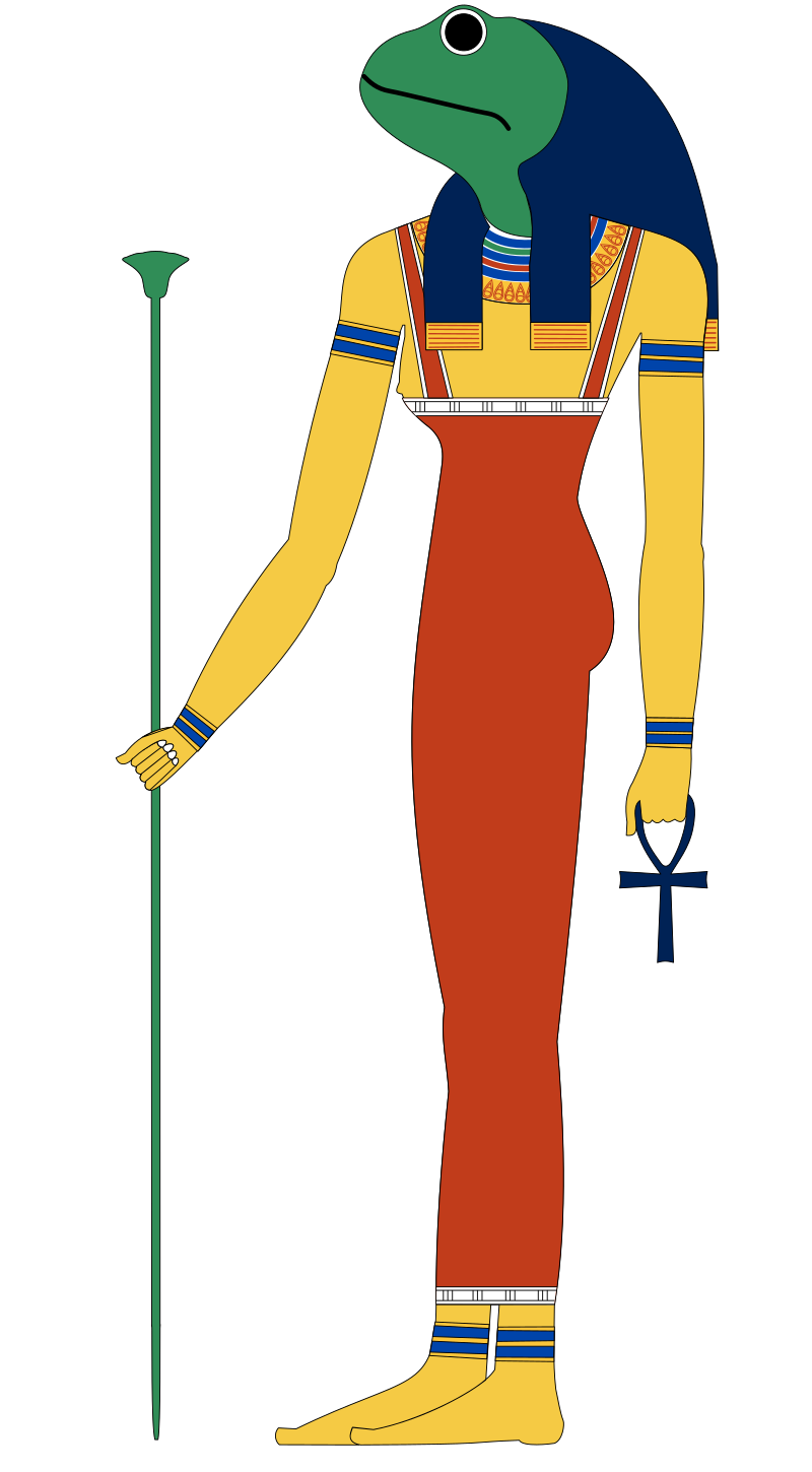 Heqet drawing is borrowed from Wikipedia. It is copyright PharaohCrab and is shared under the CC0 Creative Commons license.