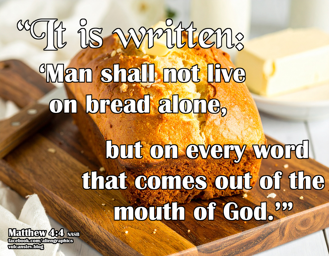 4 Then Jesus was led up by the Spirit into the wilderness to be tempted by the devil. 2 And after He had fasted for forty days and forty nights, He then became hungry. 3 And the tempter came and said to Him, “If You are the Son of God, command that these stones become bread.” 4 But He answered and said, “It is written: ‘Man shall not live on bread alone, but on every word that comes out of the mouth of God.’”