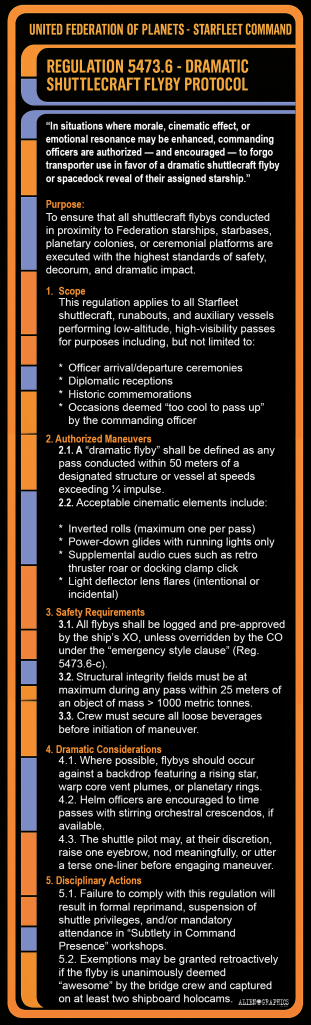 Regulation 5473.6 – Dramatic Shuttlecraft Flyby Protocol