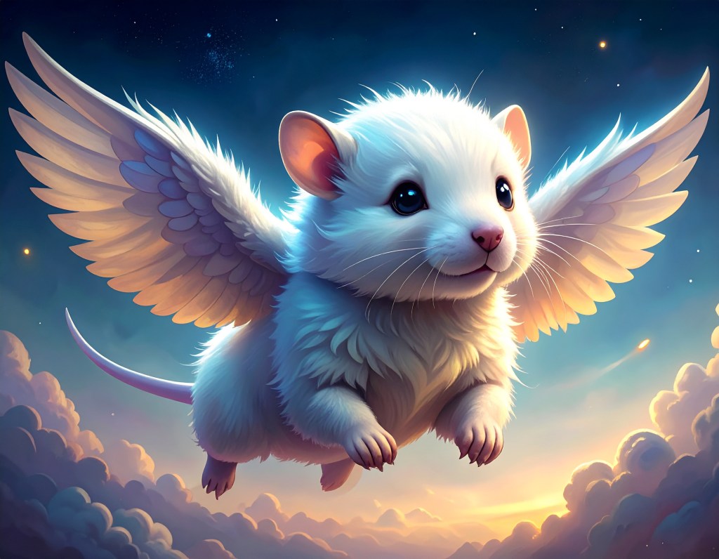 Many eons ago, an elf Druid, Mor’oh was banned from his enclave for magically cross breeding various beasts. He was banished for violating the “Laws of Nature”. Undeterred by his banishment, Mor’oh continued his unnatural experiments. The Druid had as many failures as he had successes. The Pegamouse was bred magically combining the aspects of a Terrier, Eagle, and Mouse (Canid, Avian, and Rodent). Mor’oh cheekily called it a Flying C.A.R. pet. Most rangers and learned scholars call it a Canis Aves Rodentia familiaris, the Pegamouse. The Firefly Cherub is a breed of Pegamouse.