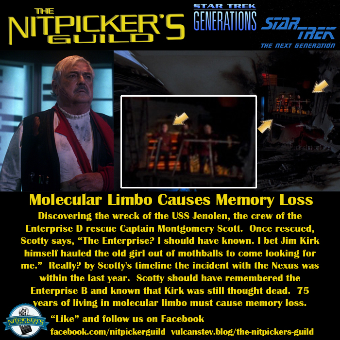 The reel-ity of the two productions is that Scotty suffered memory loss being trapped in a transporter loop for seventy-five years.