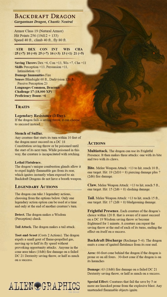 Backdraft Dragon verbiage and image is ©2025 Alien Graphics and shared under the CC BY-NC-SA