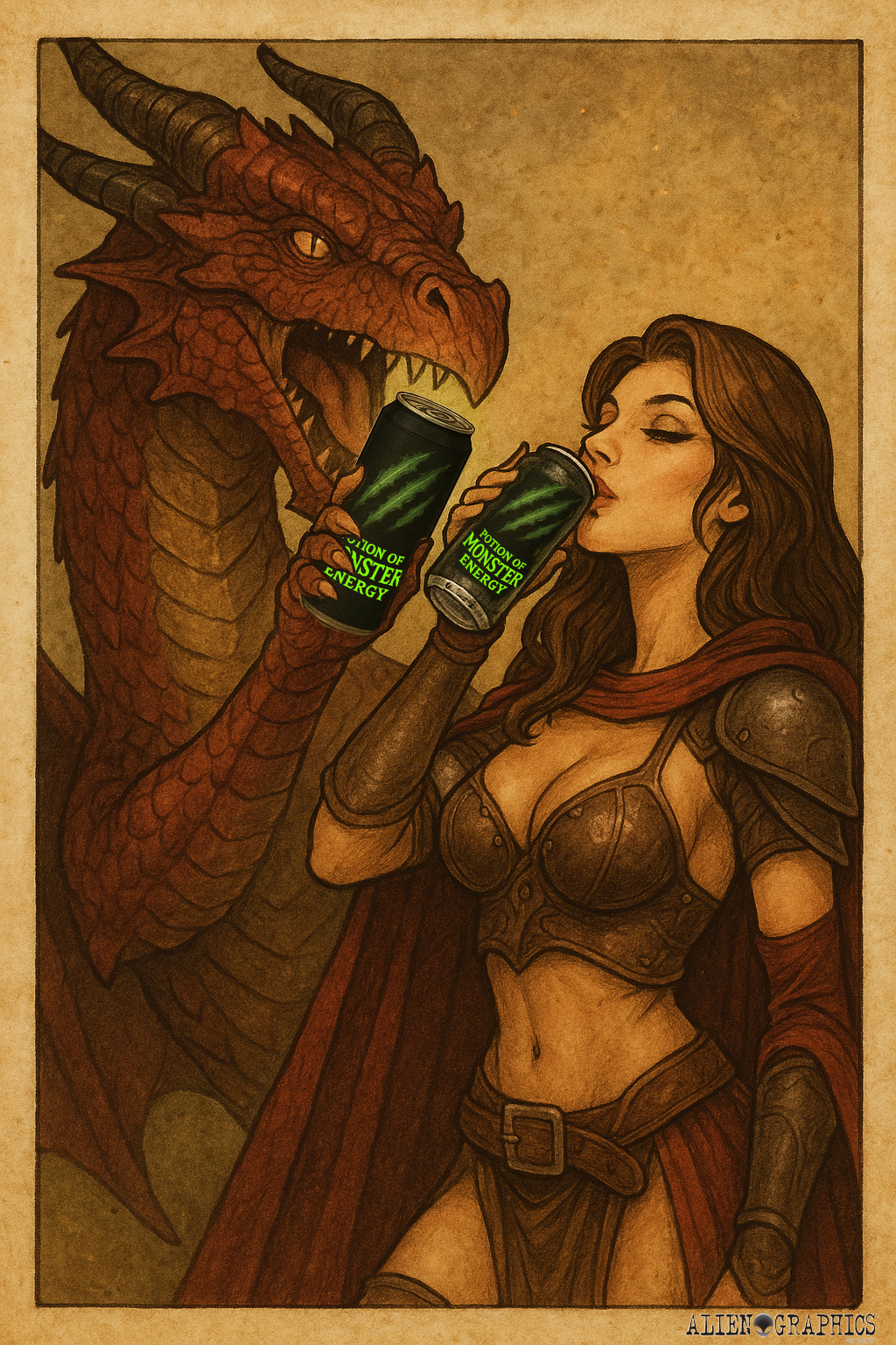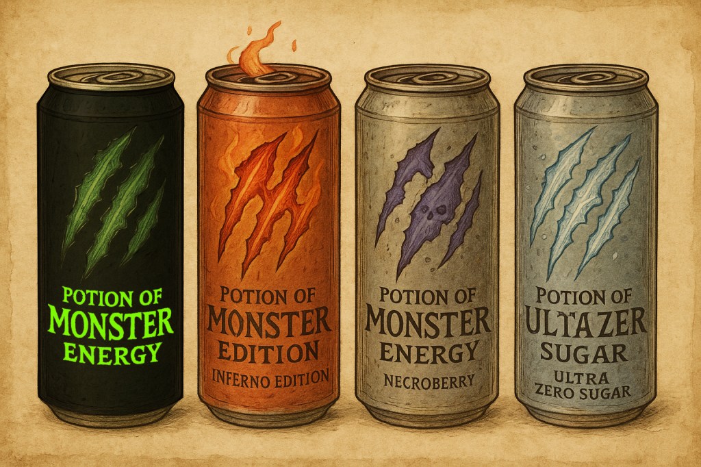 The Potion of Monster Energy base image was built using ChatGPT using prompts by Alien Graphics ©2025 Alien Graphics