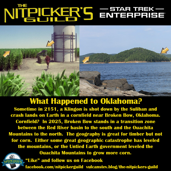 But there it is on screen, a lush beautiful field of corn. The type that Kevin Costner would plow under to build a baseball field, with nary a mountain in sight. It is apparent that within the next 125 years, Oklahoma decides at some point to level the Ouachita Mountains and bring in enough black dirt topsoil to grow corn.